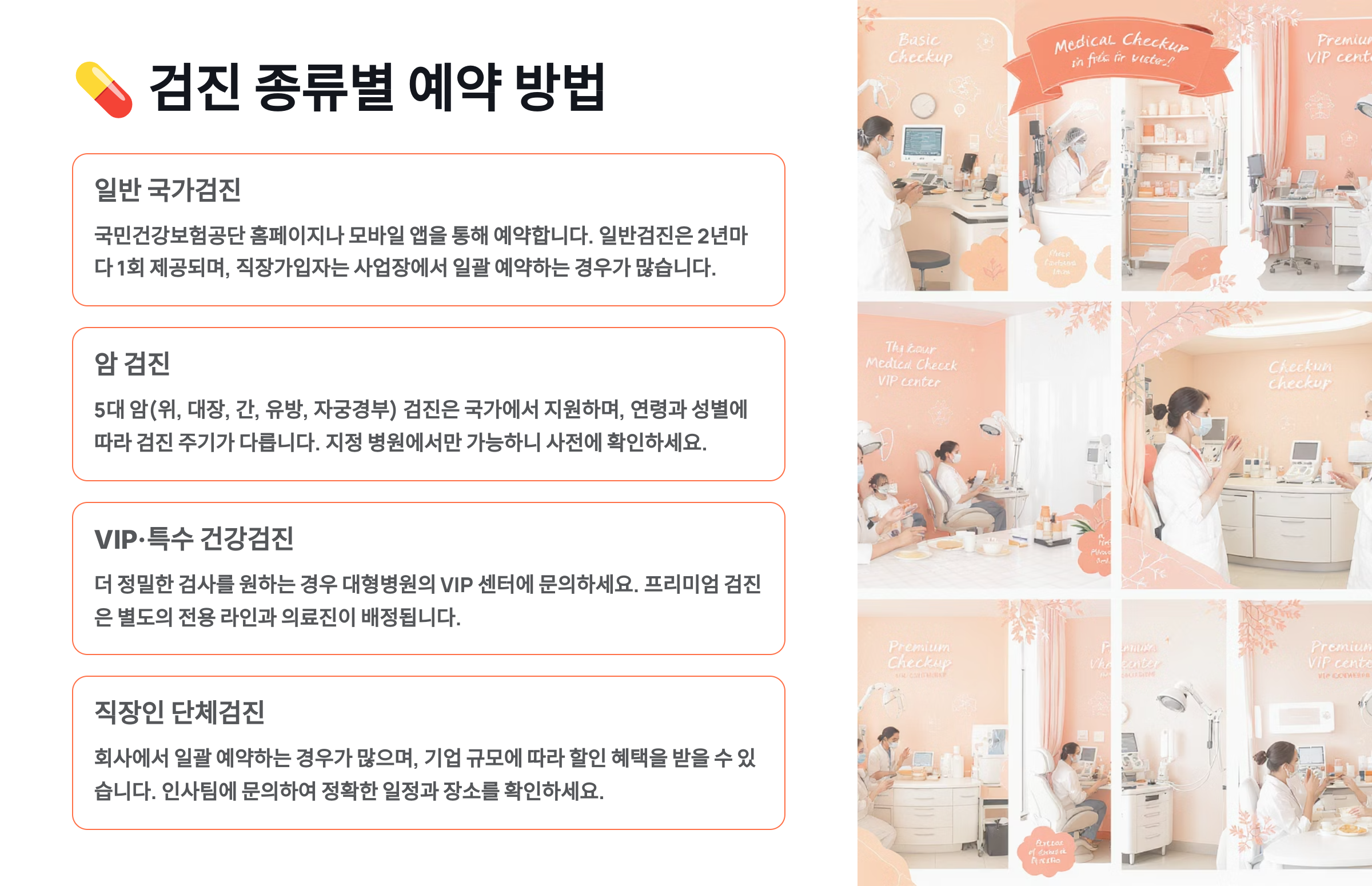 건강검진은 종류가 정말 다양해요. 국가에서 지원하는 기본 검진부터 개인이 선택하는 정밀 검진까지, 각각의 특징과 예약 방법을 알아두면 나에게 맞는 검진을 선택할 수 있어요. 일반건강검진, 암검진, 생애전환기검진, 영유아검진 등 국가검진과 함께 종합검진, 특화검진 등 다양한 옵션이 있답니다. 각 검진마다 대상자와 검사 항목이 다르니 잘 확인해보세요! 🏥