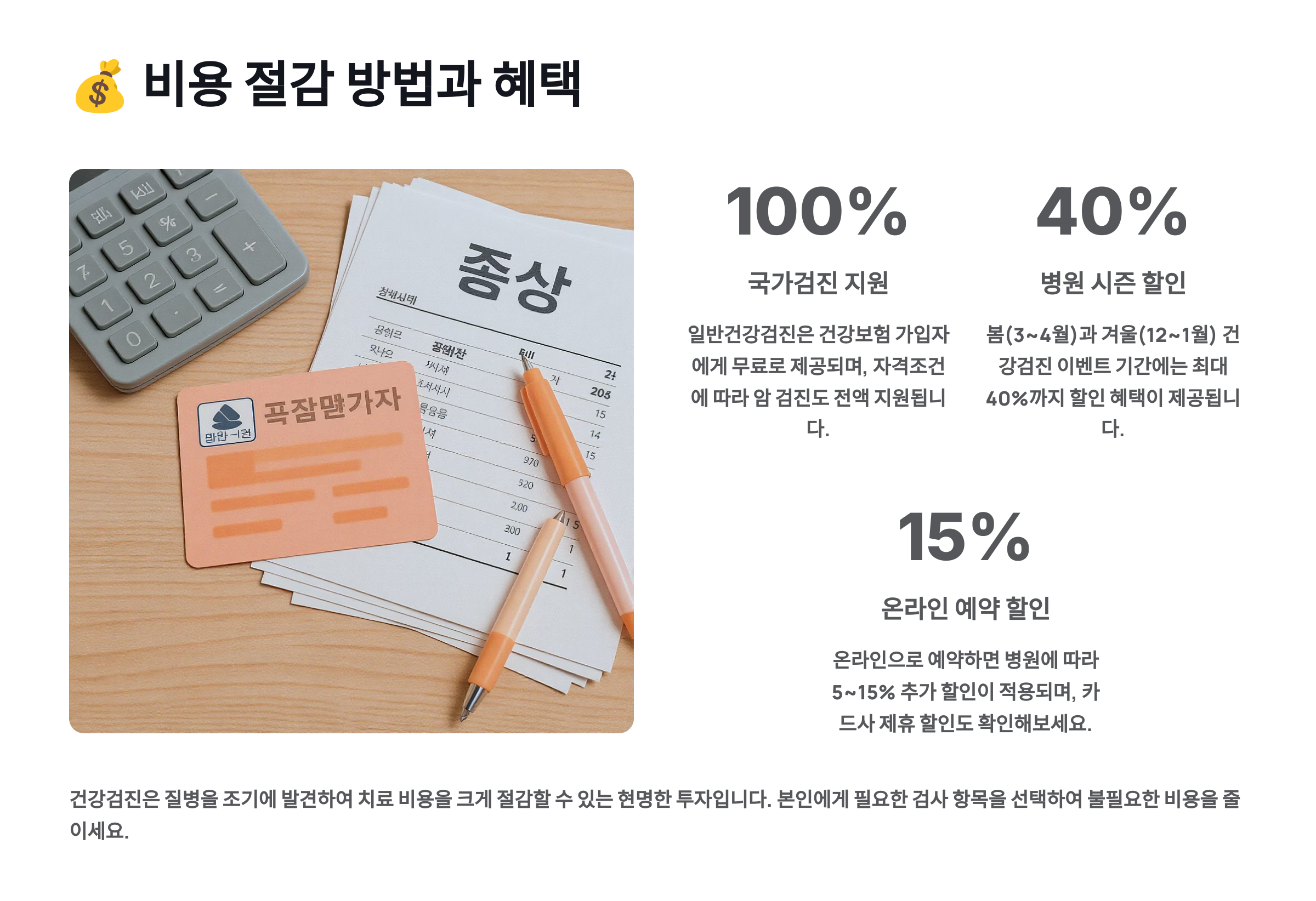 | 검진센터 | 패키지 할인 활용, 기업 제휴 확인 | 종합검진 희망자 |