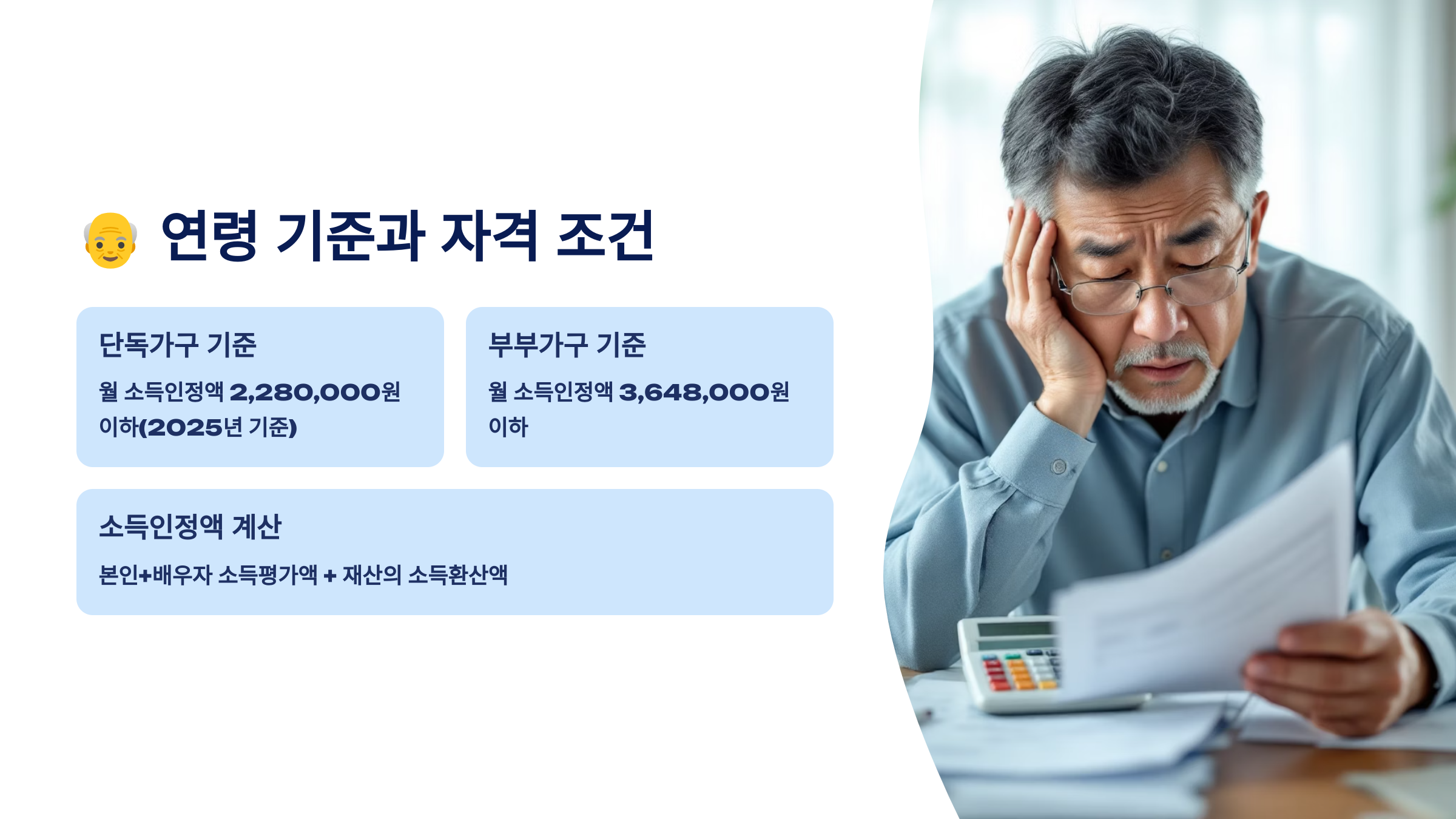 기초연금 제도의 가장 큰 특징은 보편적 급여가 아닌 선별적 급여라는 점이에요. 즉, 만 65세 이상이라고 해서 누구나 받을 수 있는 것이 아니라, 소득과 재산을 종합한 소득인정액이 일정 기준 이하인 경우에만 지급받을 수 있어요. 2025년 기준으로 단독가구는 월 213만원, 부부가구는 월 340만 8000원 이하여야 해요. 이런 기준을 두는 이유는 한정된 예산으로 정말 필요한 분들에게 집중 지원하기 위함이에요.