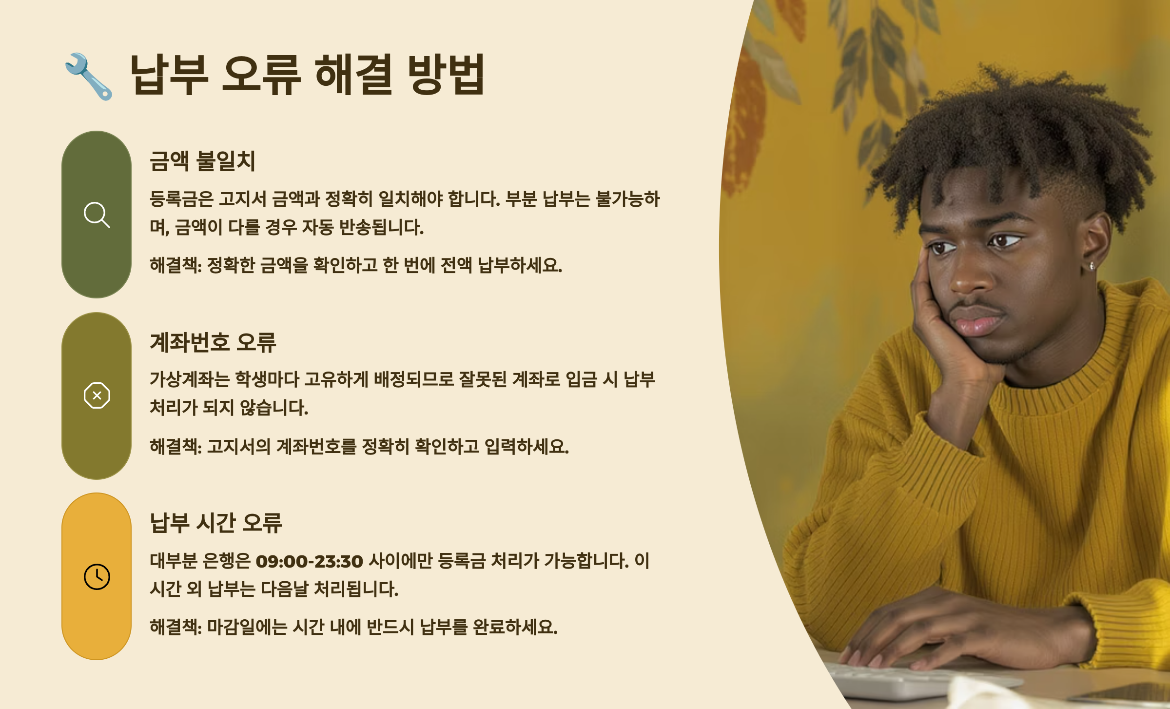 등록금 납부 중 오류가 발생했다고요? 당황하지 마세요! 대부분의 문제는 간단히 해결할 수 있어요. 차근차근 확인해보면 금방 해결될 거예요. 함께 알아볼까요? 🛠️