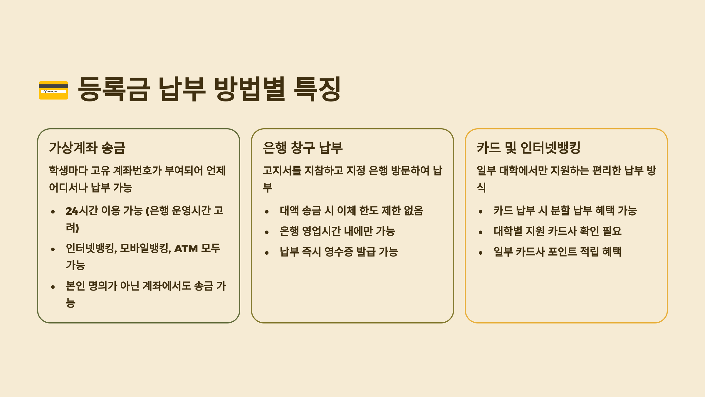 💳 등록금 납부 방법별 특징