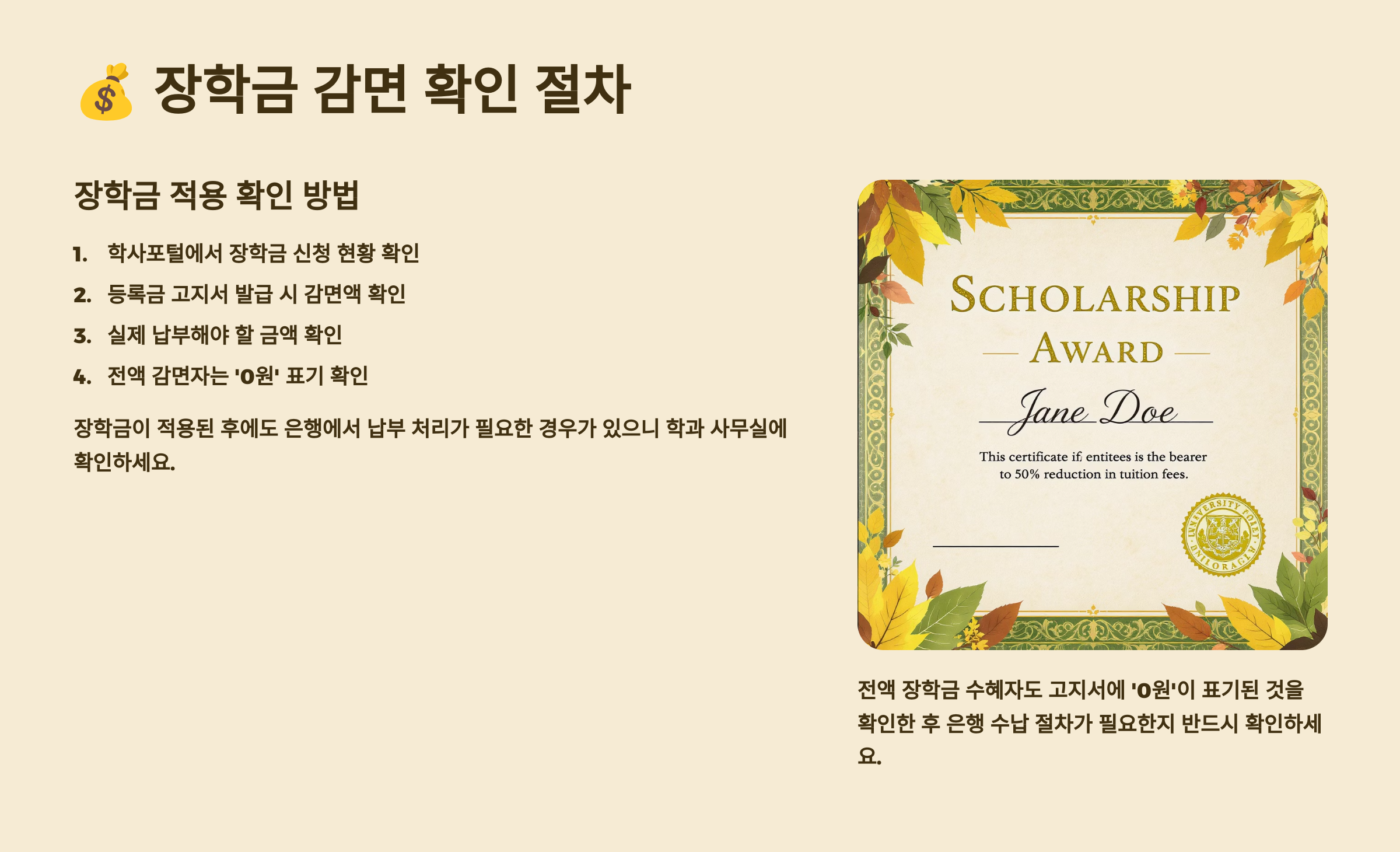 💰 장학금 감면 확인 절차
