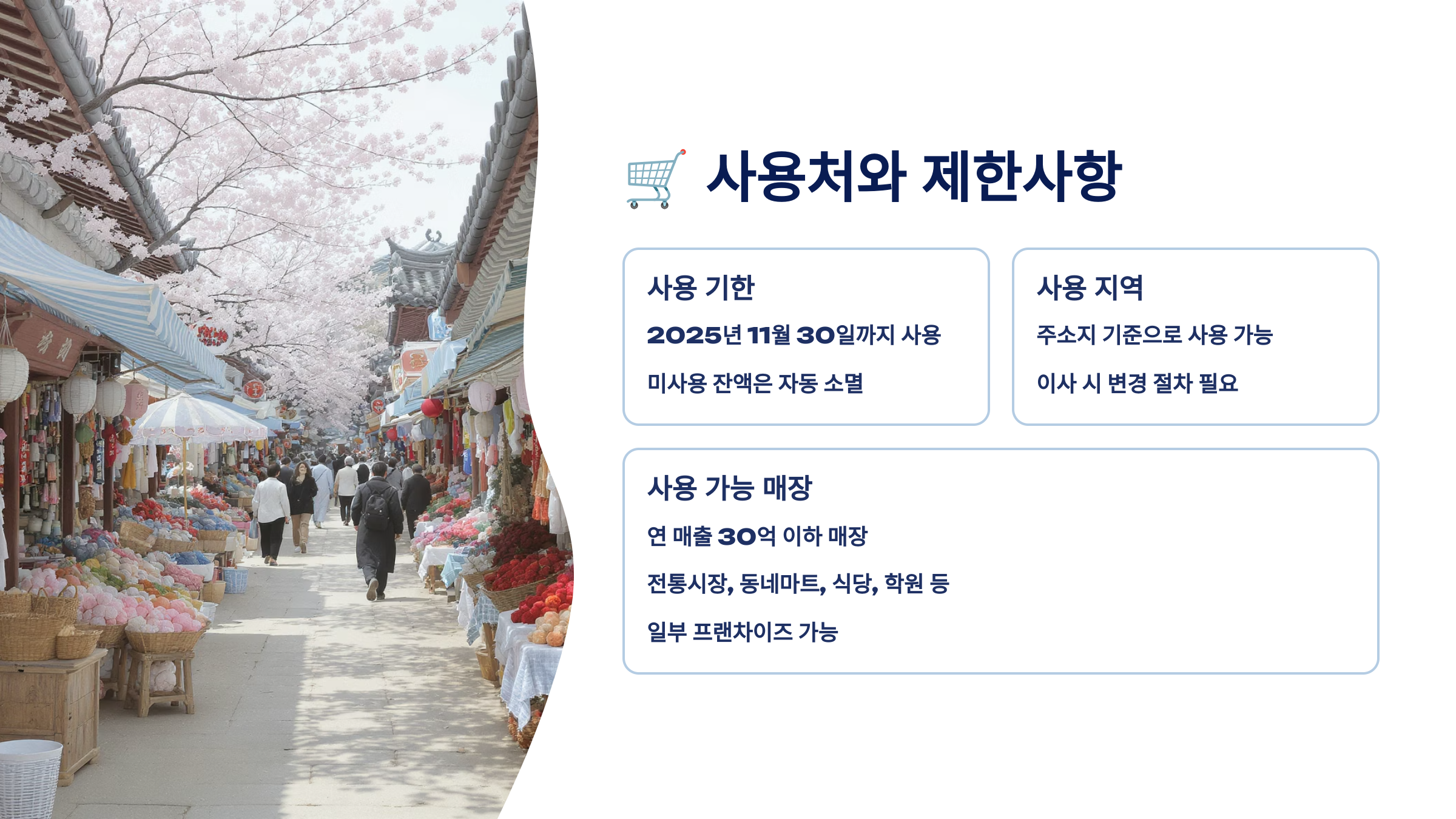 🛒 사용처와 제한사항 꼼꼼히 알아보기
