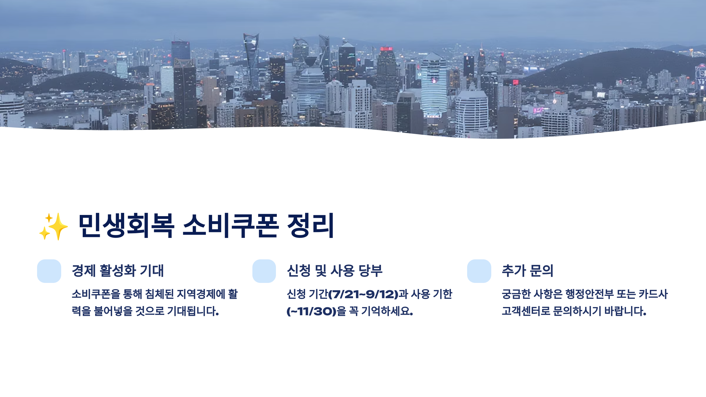 소비쿠폰을 현명하게 사용하면 실제 지급액보다 더 큰 혜택을 누릴 수 있어요. 카드사 혜택 중복, 전통시장 활용, 공공배달앱 추가 할인 등 다양한 방법을 활용해보세요. 무엇보다 11월 30일 사용 기한을 꼭 기억하시고, 계획적으로 사용하시길 바랍니다. 이번 민생회복 소비쿠폰이 여러분의 생활에 실질적인 도움이 되길 진심으로 응원합니다! 💪✨