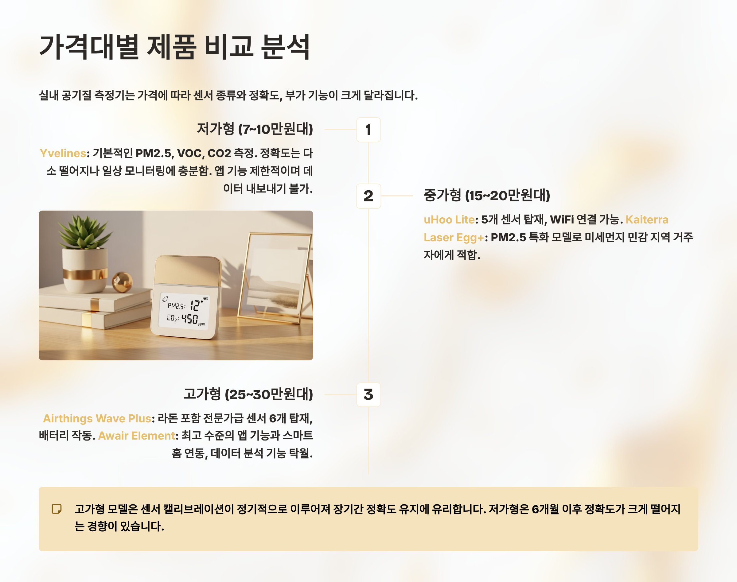 공기질 측정기는 3만원부터 30만원까지 가격대가 다양해요. 각 가격대별로 어떤 제품들이 있고, 성능은 어떤지 자세히 알아볼게요. 먼저 20만원 이상 고가 제품부터 살펴보죠.