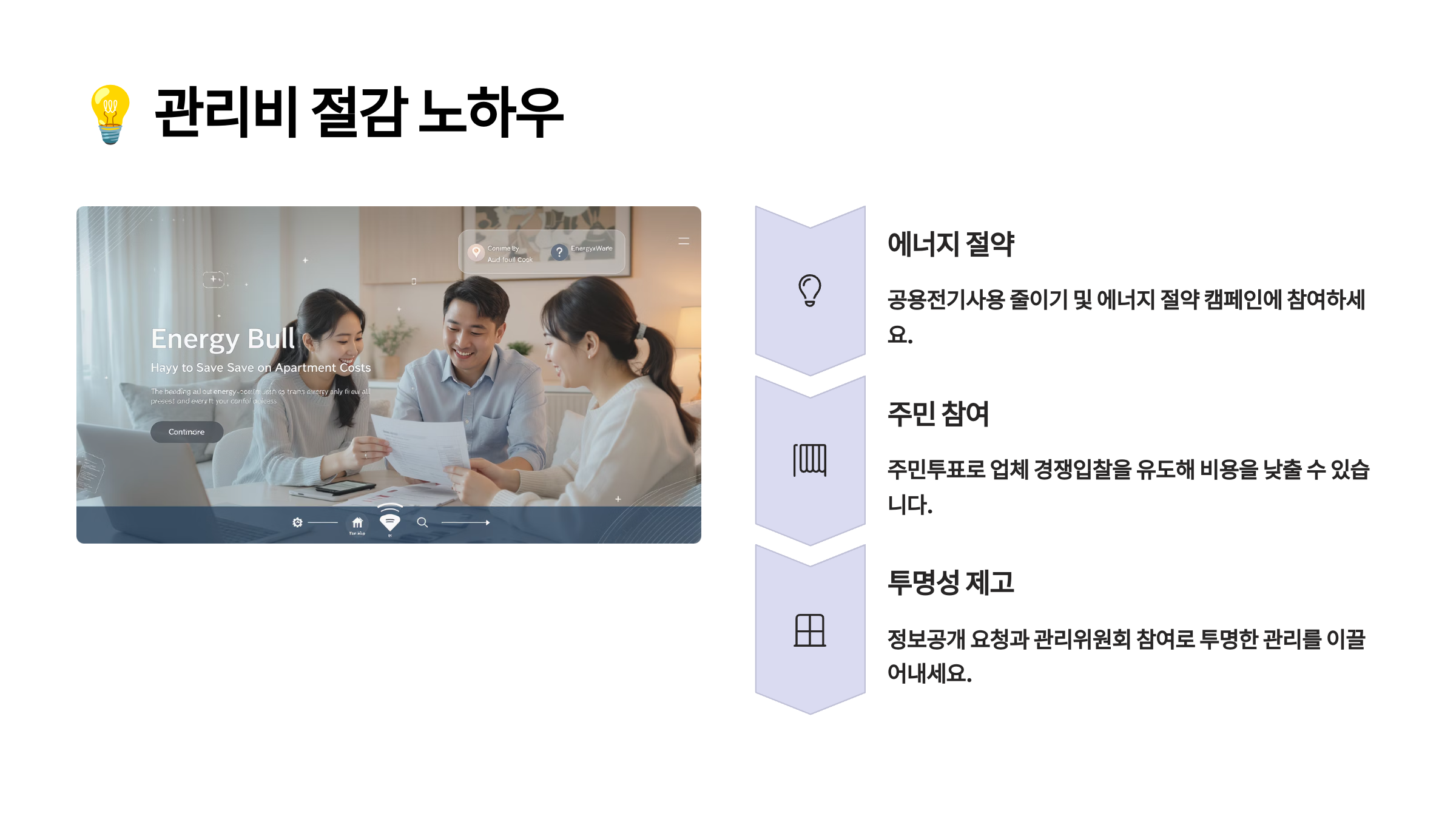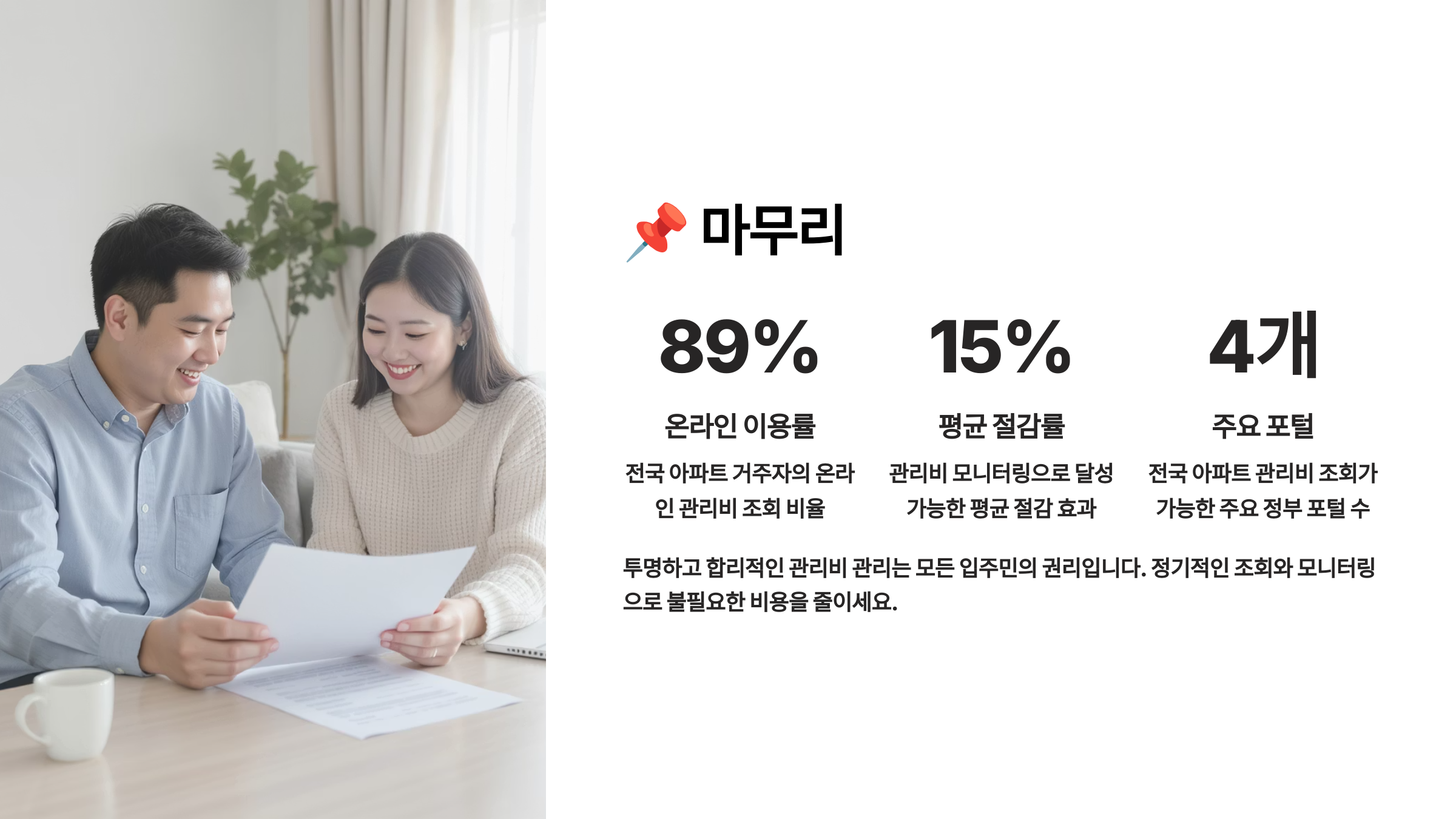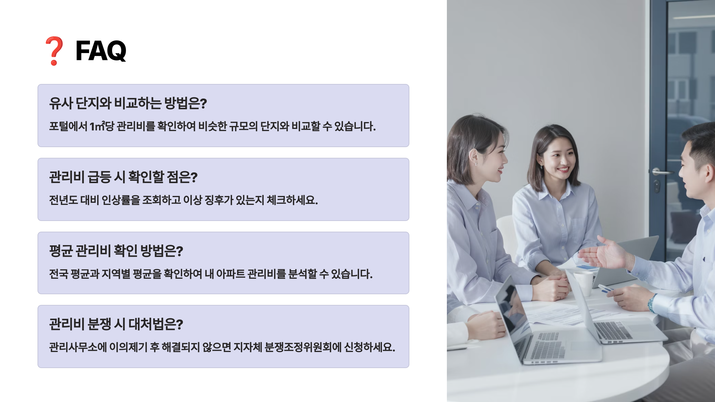 무엇보다 중요한 건 관리비에 대한 관심과 참여예요. 입주자대표회의에 참석하고, 관리비 운영에 대해 의견을 제시하는 것부터 시작해보세요. 투명하고 효율적인 관리비 운영은 우리 모두의 노력으로 만들어진답니다.