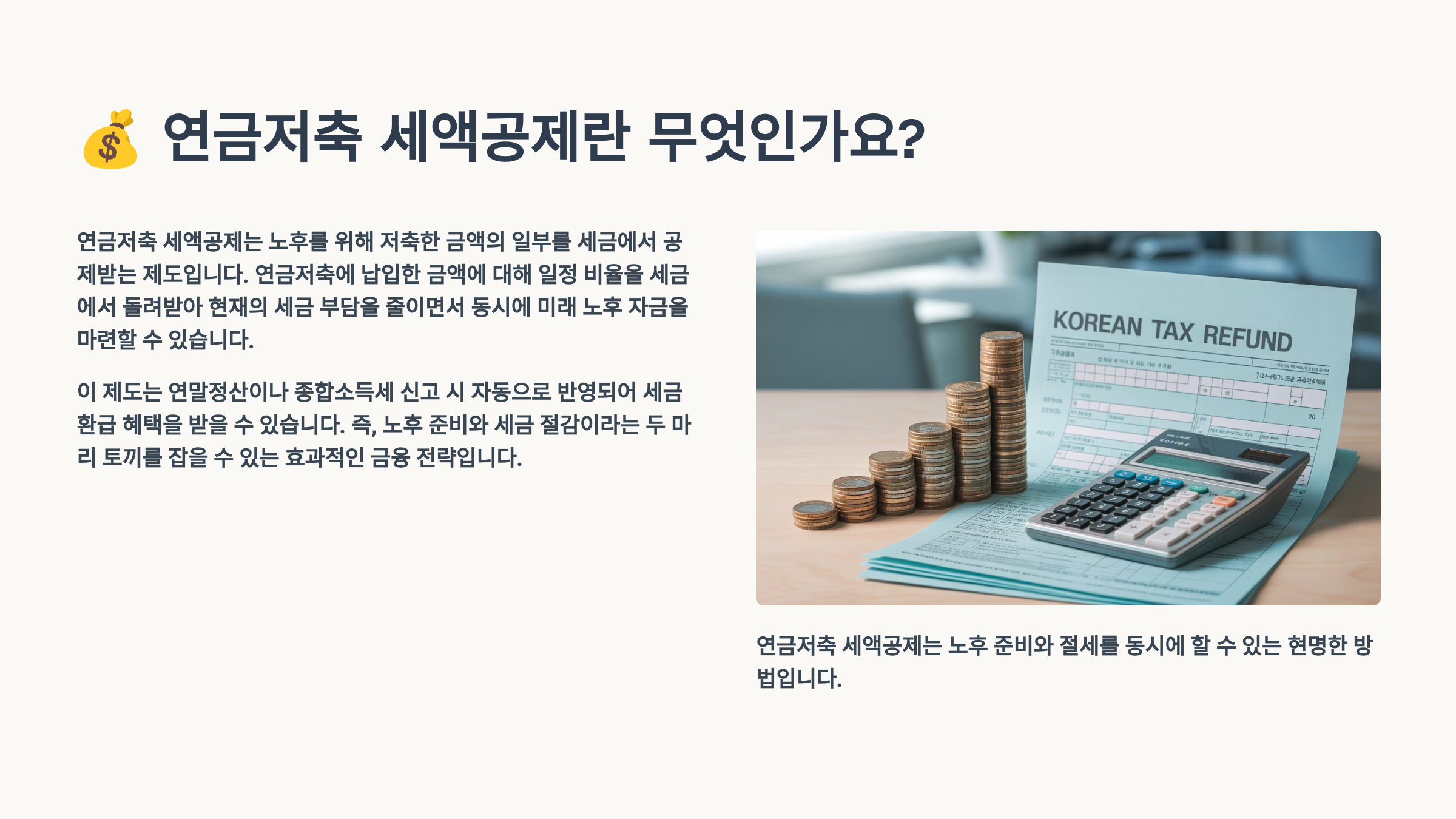 연금저축 세액공제는 개인이 노후를 대비해 연금저축계좌에 납입한 금액에 대해 세금을 감면해주는 제도예요. 쉽게 말해서 미래를 위해 저축하면 정부가 세금을 깎아주는 거죠! 😊 이 제도는 2001년부터 시작되어 지금까지 많은 변화를 거쳐왔어요.