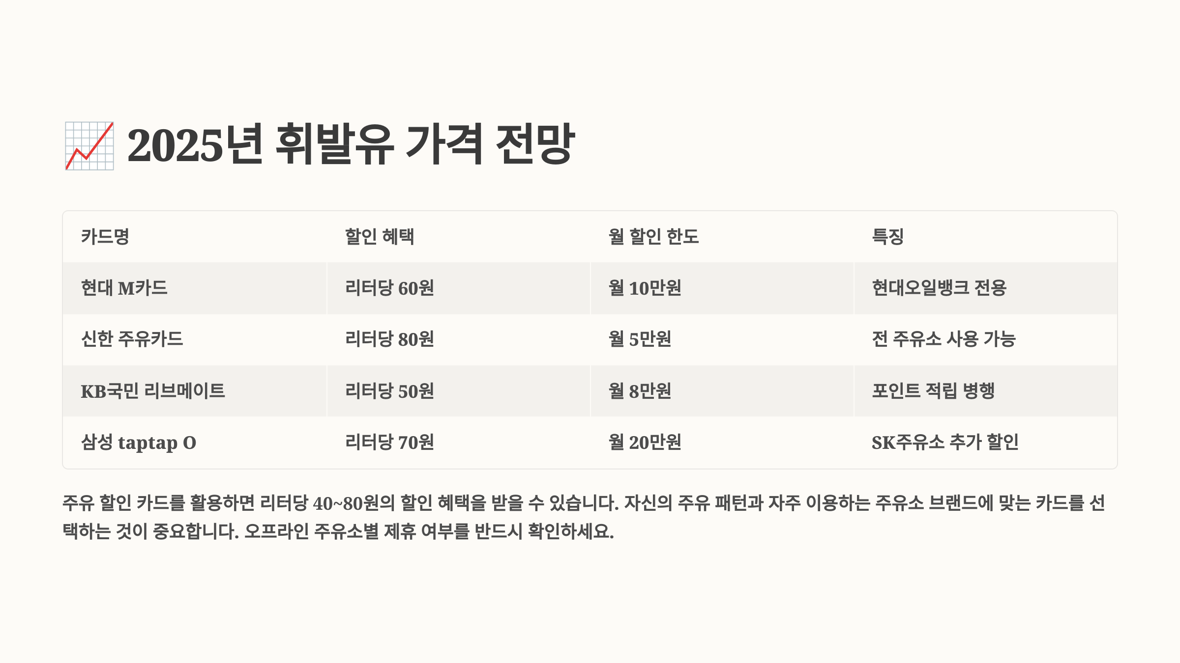💰 2025년 주요 주유 할인 카드 상세 비교