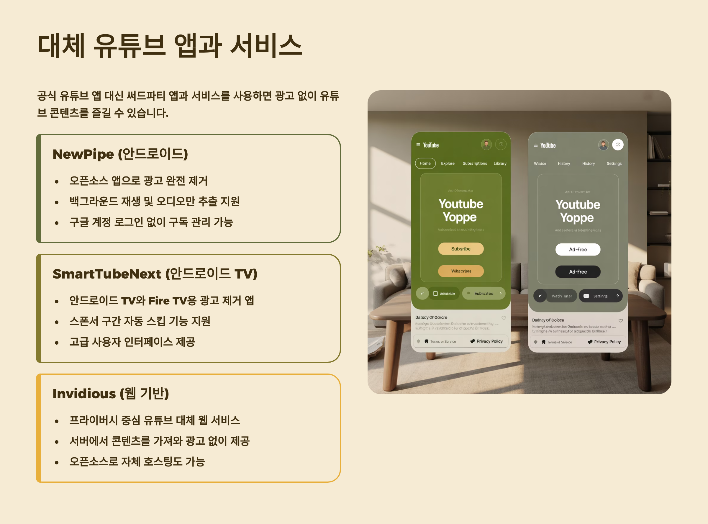 🔄 대체 유튜브 앱과 서비스