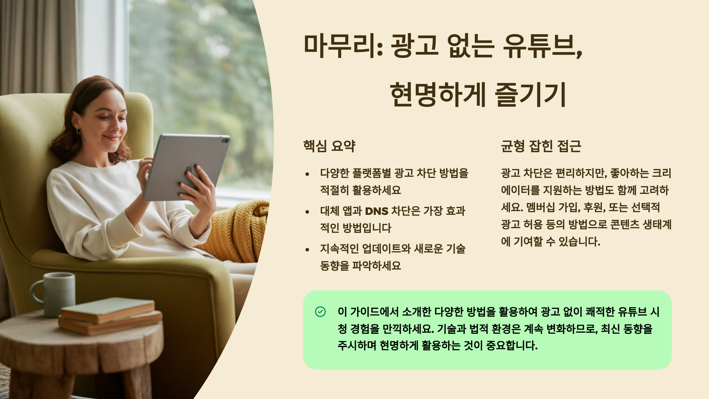 광고 차단은 개인의 선택이지만, 좋아하는 크리에이터를 지원하는 다른 방법도 함께 고려해보면 좋겠어요. 멤버십 가입, 굿즈 구매, 직접 후원 등으로 크리에이터를 응원하면서도 쾌적한 시청 환경을 유지할 수 있어요. 건전한 콘텐츠 생태계를 위해 우리 모두가 현명한 선택을 하길 바라요!