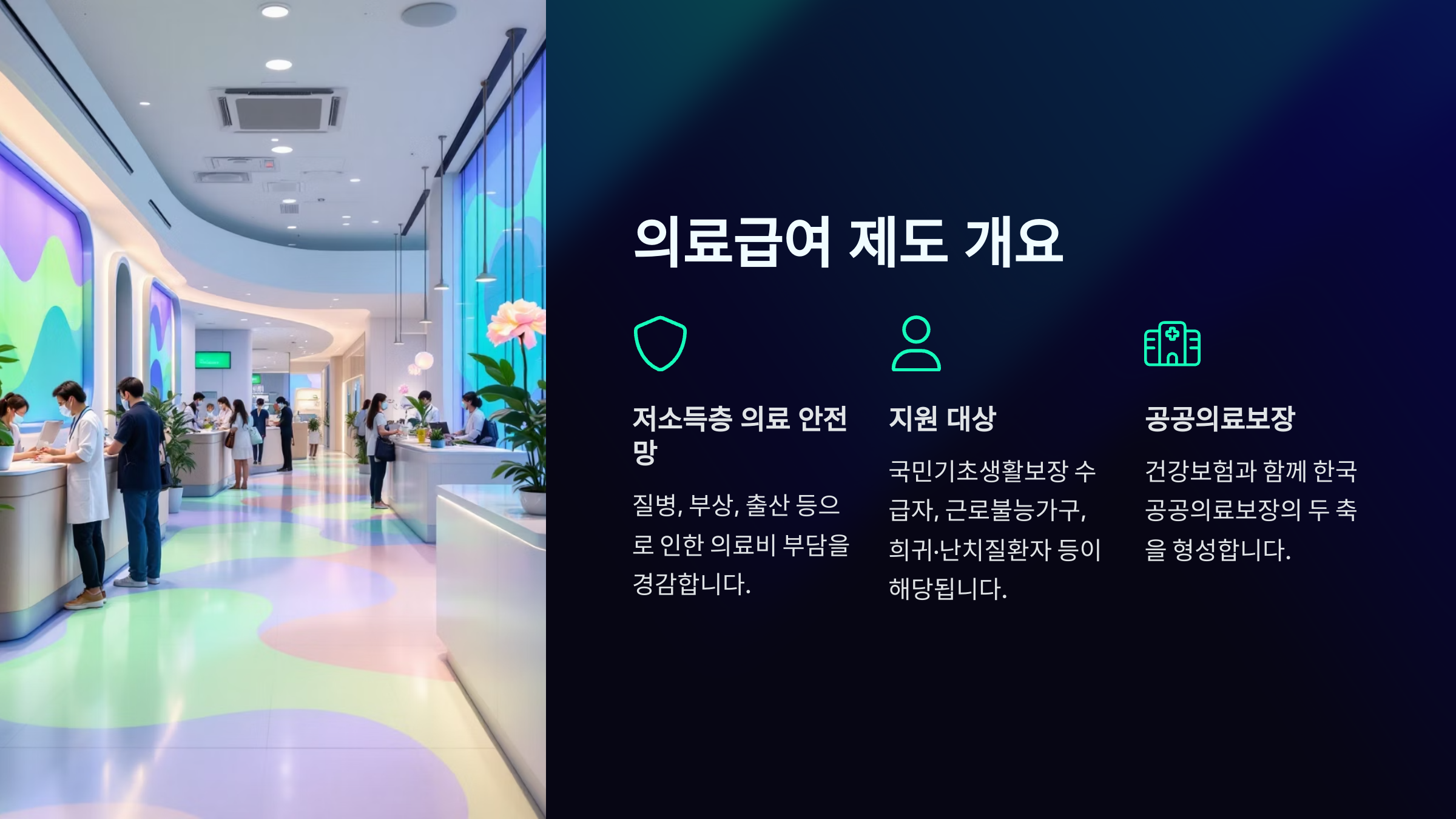 의료급여 제도는 단순히 의료비만 지원하는 것이 아니라 건강검진, 예방접종, 재활치료 등 포괄적인 의료서비스를 제공해요. 또한 의료급여 수급자는 건강보험 미가입자가 아니라 별도의 의료보장 체계에 속해 있어서 더 두터운 보장을 받을 수 있어요. 내가 생각했을 때 이 제도는 정말 중요한 사회보장제도라고 생각해요!