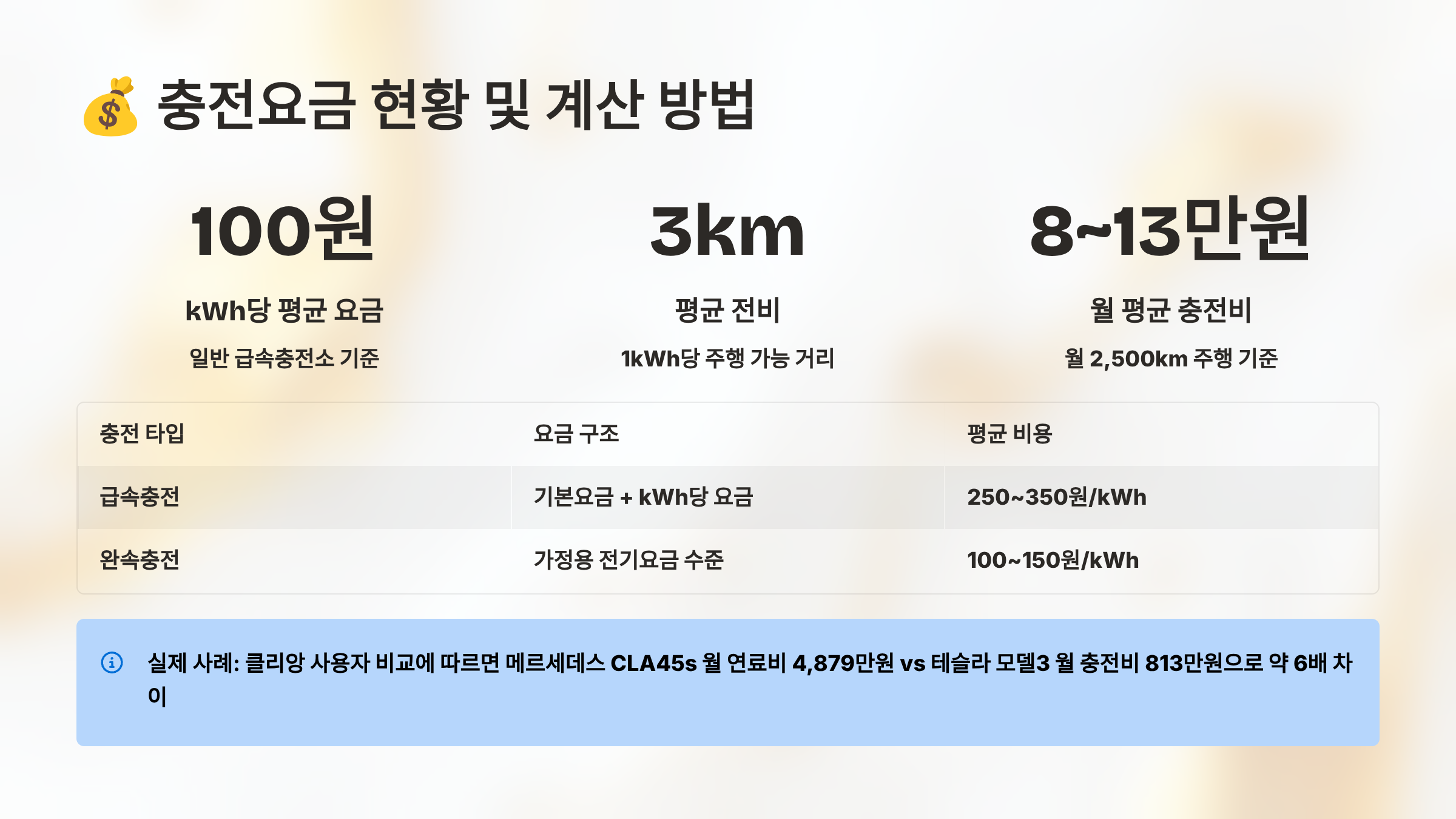본 글의 충전요금 정보는 2025년 1월 기준이며, 실제 요금은 충전사업자, 지역, 시간대에 따라 달라질 수 있습니다. 정확한 요금은 해당 충전사업자에 직접 확인하시기 바랍니다. 투자 및 구매 결정은 본인의 판단과 책임하에 진행하시기 바랍니다.