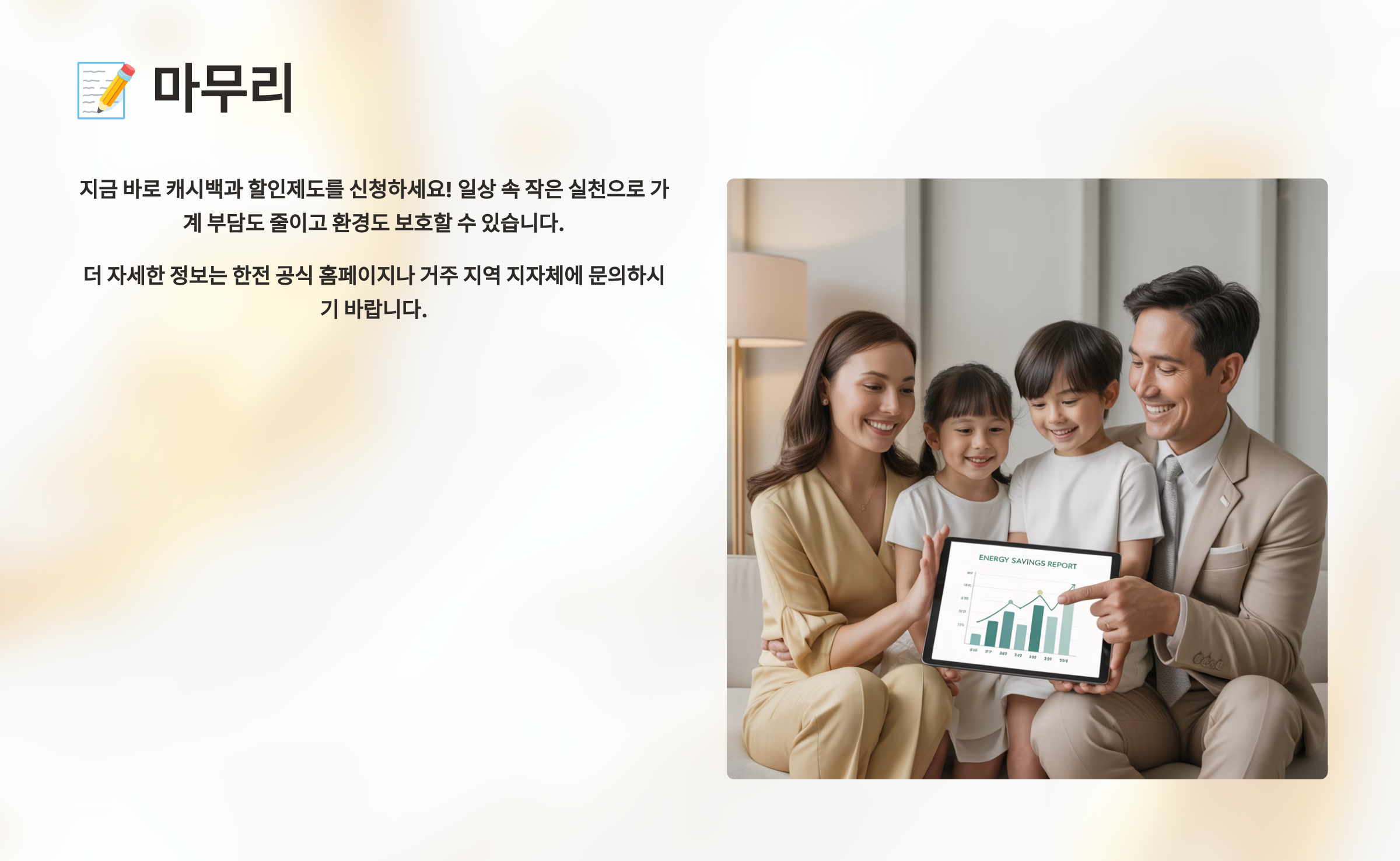 지금 바로 한전 사이버지점에서 에너지 캐시백을 신청하세요!