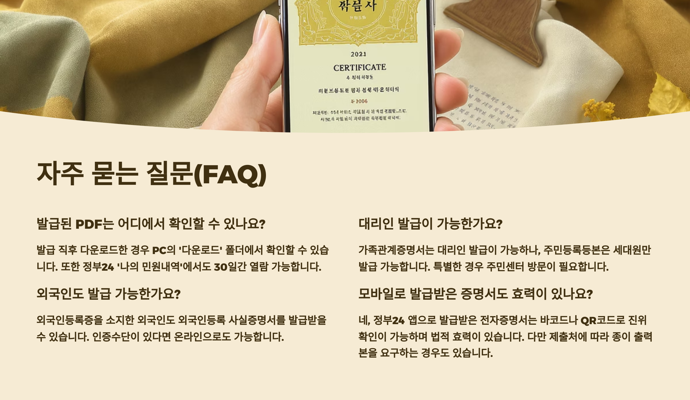A7. 비회원으로도 발급 가능해요! 하지만 매번 본인인증을 해야 하고 발급 이력 관리가 안 돼요. 자주 이용하신다면 회원가입을 추천드려요. 한 번 가입하면 계속 편리하게 이용할 수 있거든요!