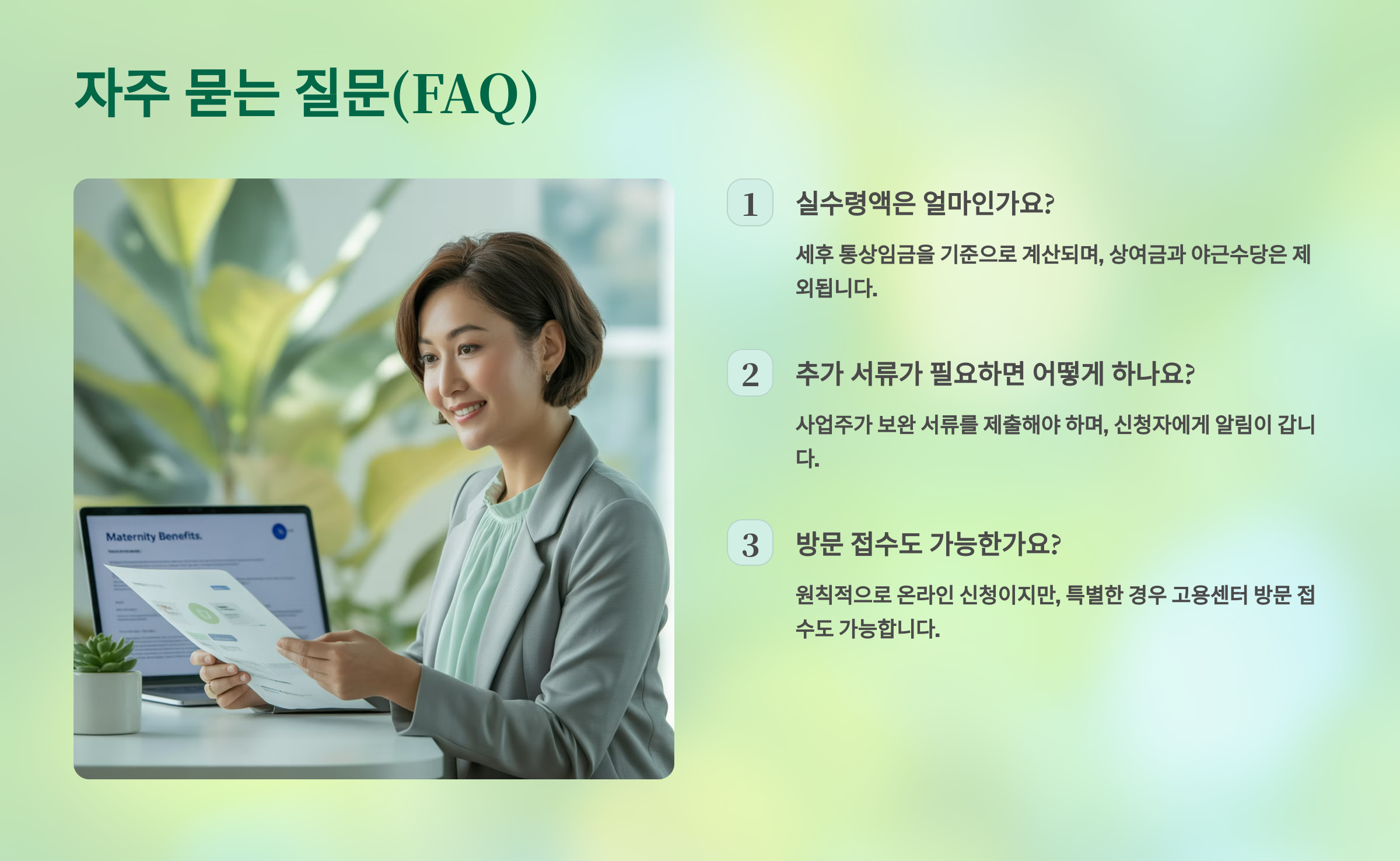온라인 신청의 가장 큰 장점은 매월 단위로 신청할 수도 있고, 휴가가 모두 끝난 후에 일괄로 신청할 수도 있다는 거예요. 나의 경험상 매월 신청하는 것이 경제적으로 더 안정적이었어요. 왜냐하면 출산 후에는 예상치 못한 지출이 많이 발생하거든요. 기저귀, 분유, 각종 육아용품 등 필요한 것들이 한꺼번에 몰려와서 매달 급여를 받는 것이 가계 운영에 도움이 됐답니다.