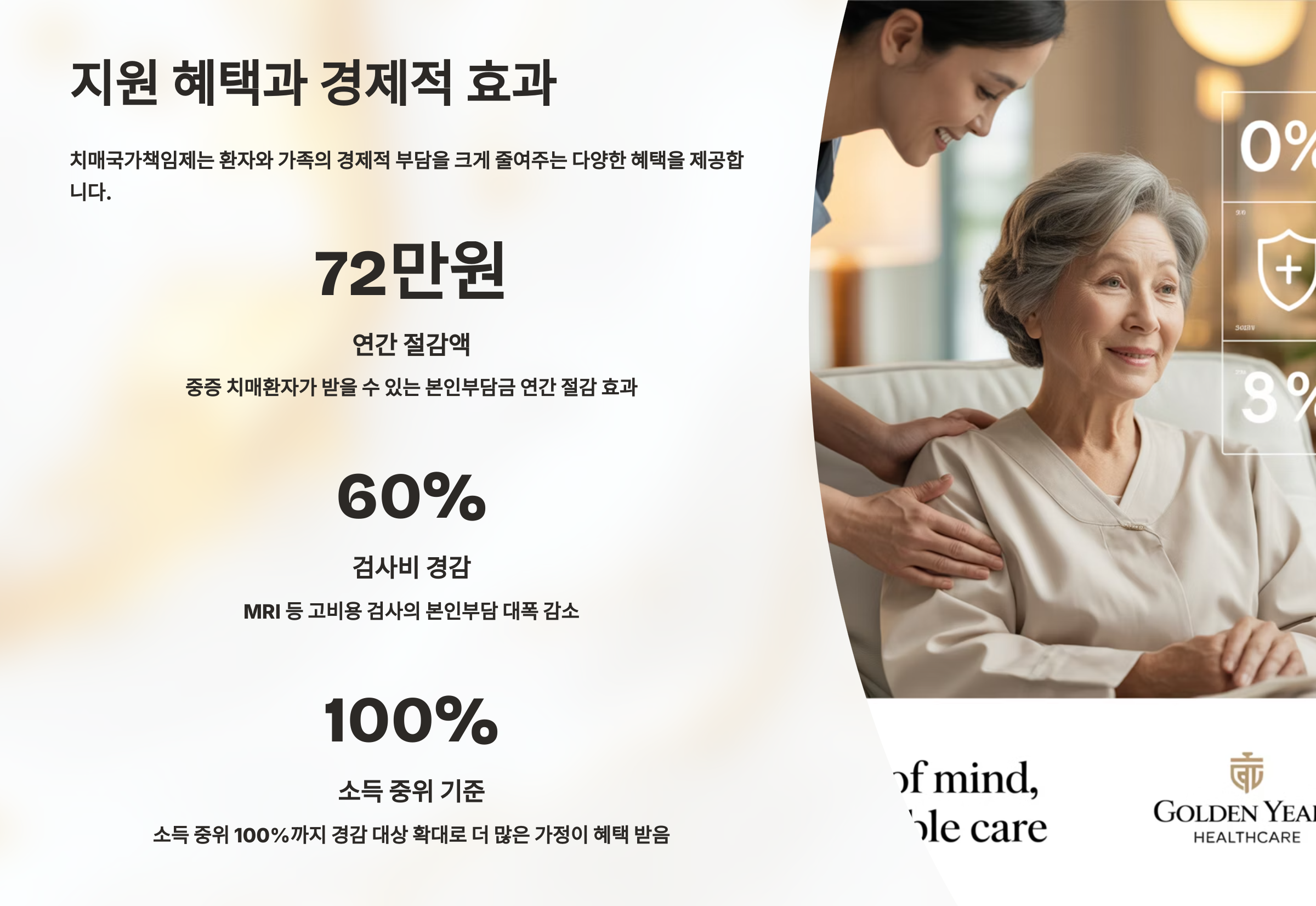 치매국가책임제의 가장 큰 장점은 바로 경제적 부담을 대폭 줄여준다는 점이에요. 치매 진단과 치료에 필요한 각종 검사와 의료비가 건강보험 적용을 받게 되면서, 기존에 수백만원씩 들던 비용을 크게 절약할 수 있게 되었어요. 예를 들어 치매 진단에 필수적인 종합 신경인지검사의 경우 기존에 상급종합병원에서 40만원이 들었는데, 이제는 15만원으로 줄어들었답니다. MRI 검사도 60만원에서 33만원으로 거의 절반 가까이 줄어들어서 경제적 부담이 상당히 완화되었어요.