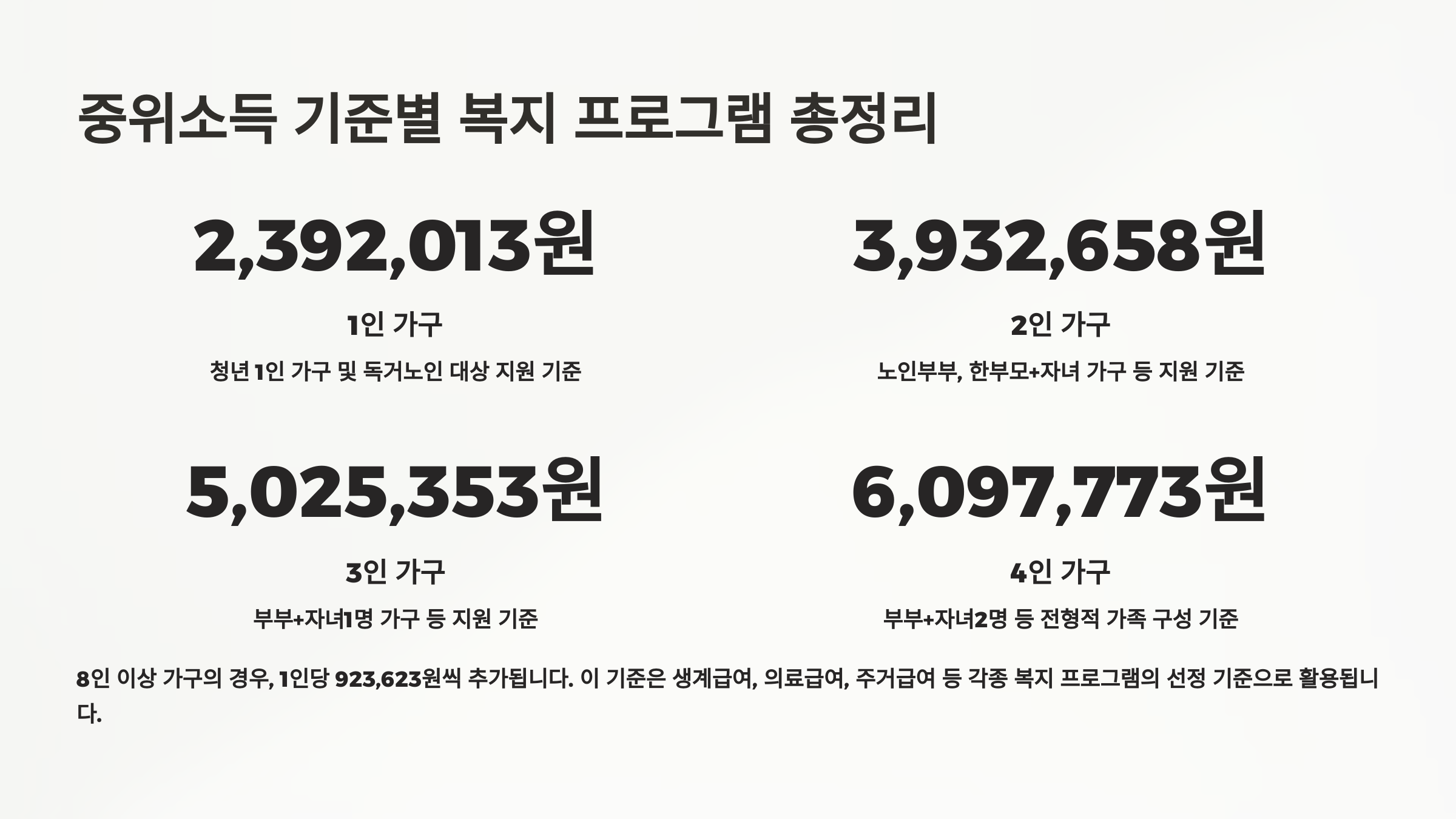 2025년 중위소득 기준표 공개, 복지 신청 전 꼭 확인해야 할 기준