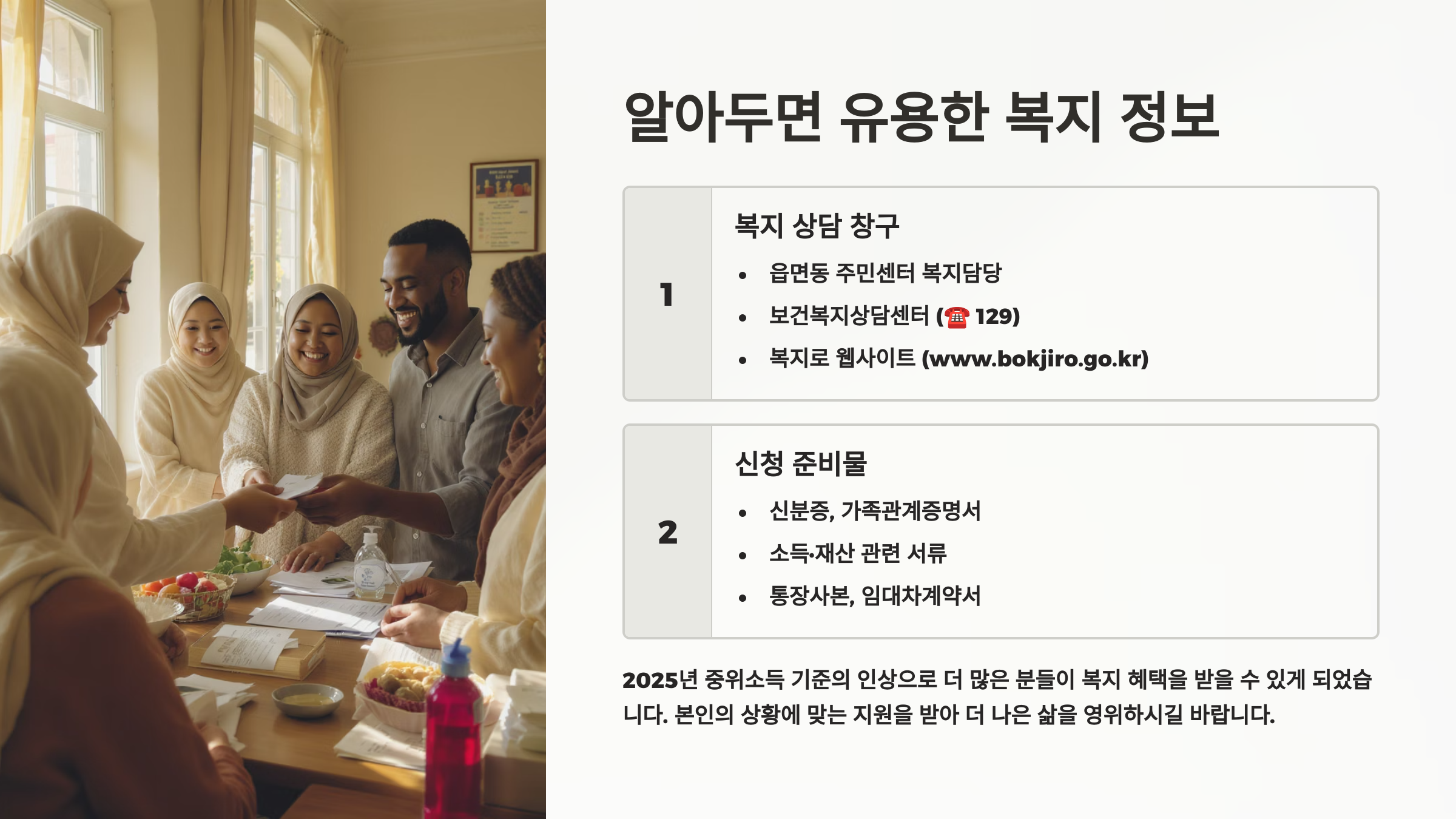 복지는 권리예요! 어려울 때 당당하게 도움을 요청하세요. 🤝