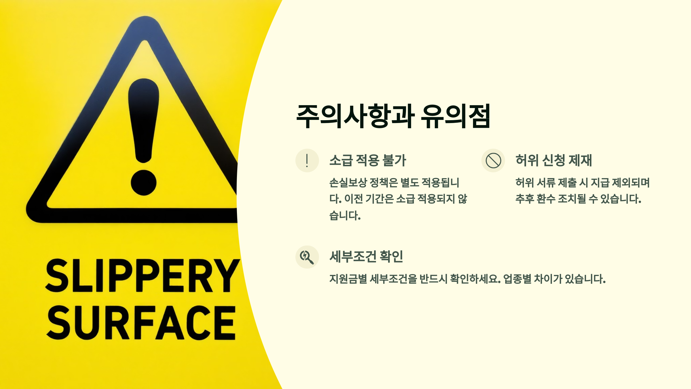 신청 기간과 관련된 주의사항도 중요해요. 각 단계별로 신청 기간이 정해져 있고, 기간이 지나면 절대 추가 신청이 불가능해요. 특히 서류 보완 요청을 받은 경우 지정된 기간 내에 반드시 보완해야 하는데, 이 기간을 놓치면 신청이 자동으로 취소되어요. 또한 현장 확인이나 추가 조사가 필요한 경우 협조를 거부하거나 연락이 닿지 않으면 지원 대상에서 제외될 수 있어요. 연락처나 주소가 변경된 경우에는 즉시 신고해야 하고, 사업장을 이전하거나 업종을 변경한 경우에도 반드시 알려야 해요. 휴대폰 번호나 이메일 주소는 항상 확인 가능한 상태로 유지해야 하고, 스팸 처리로 인해 중요한 연락을 놓치지 않도록 주의해야 해요.