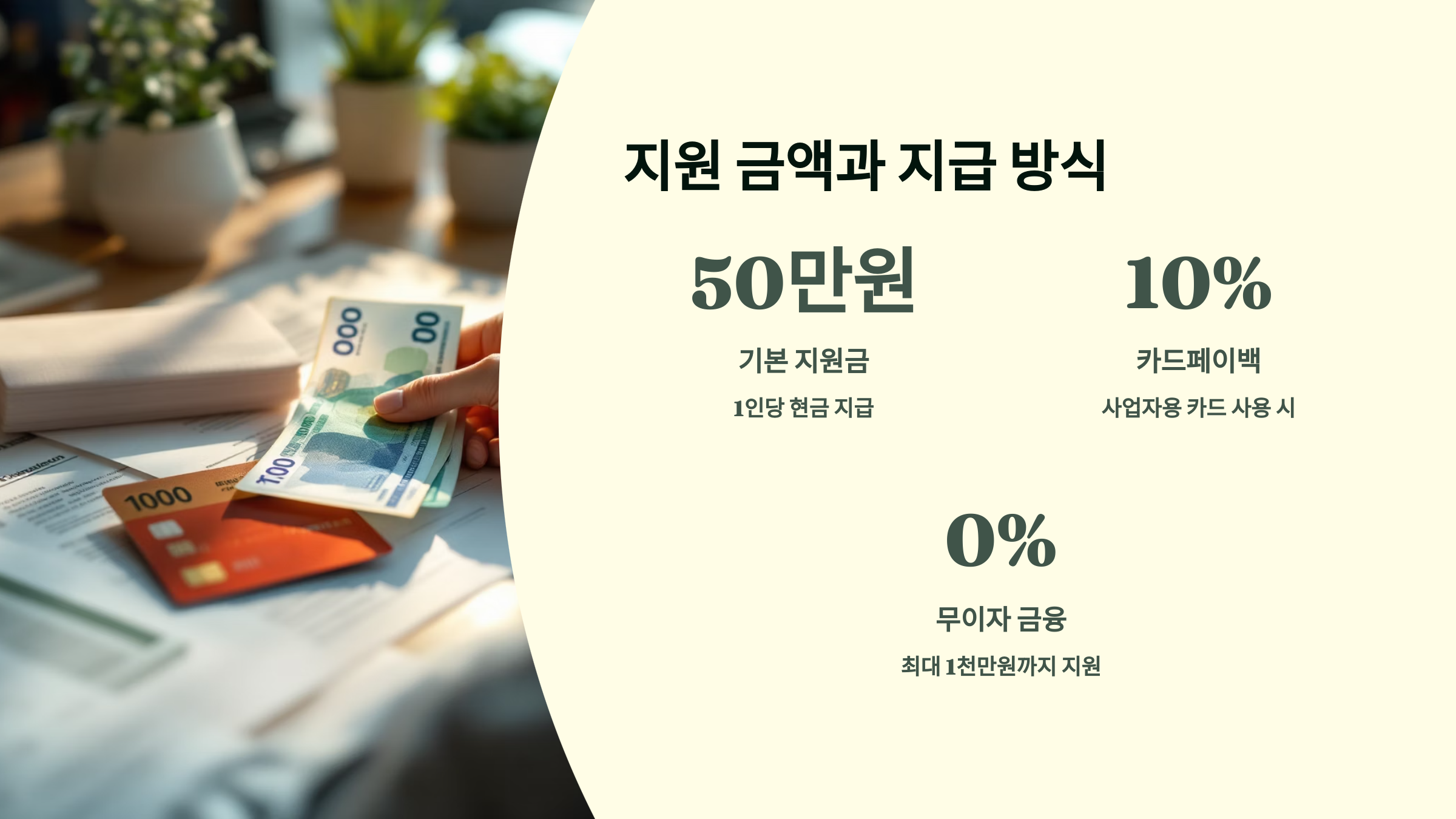 지급 방식은 현금 지급과 바우처 지급을 병행하는 혼합 방식을 채택했어요. 기본 지원금의 70%는 현금으로 사업자의 계좌에 직접 입금되고, 나머지 30%는 용도별 바우처로 지급되어요. 바우처는 임대료 지원 바우처, 원자재 구매 바우처, 디지털 마케팅 바우처, 배달비 지원 바우처 등으로 구분되어 있어요. 이렇게 함으로써 지원금이 실제 사업 운영에 도움이 되는 용도로 사용되도록 유도하고 있어요. 바우처는 스마트폰 앱을 통해 사용할 수 있으며, 가맹점에서 결제할 때 자동으로 차감되는 방식이에요. 사용 기간은 지급일로부터 12개월이며, 미사용 바우처는 현금으로 환급받을 수 있어요.