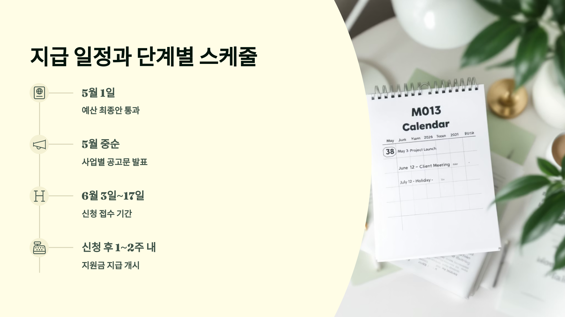 2025년 소상공인 2차 지원금의 지급 일정은 체계적이고 단계적으로 진행되어요. 전체 지급 과정은 4단계로 나뉘어 있으며, 각 단계마다 우선순위에 따라 순차적으로 지급하고 있어요. 1단계는 2025년 3월 첫째 주부터 시작되는 긴급 지원 대상 지급으로, 매출 감소율이 70% 이상인 극심한 피해 업체들을 대상으로 해요. 이들은 신청과 동시에 간소화된 심사를 거쳐 1주일 내에 지급받을 수 있어요. 2단계는 3월 셋째 주부터 시작되는 우선 지원 대상 지급으로, 여성·청년·고령자 사업자와 특별 지원 업종이 해당되어요. 3단계는 4월 첫째 주부터 시작되는 일반 지원 대상 지급이고, 4단계는 5월부터 시작되는 추가 심사 대상 지급이에요.