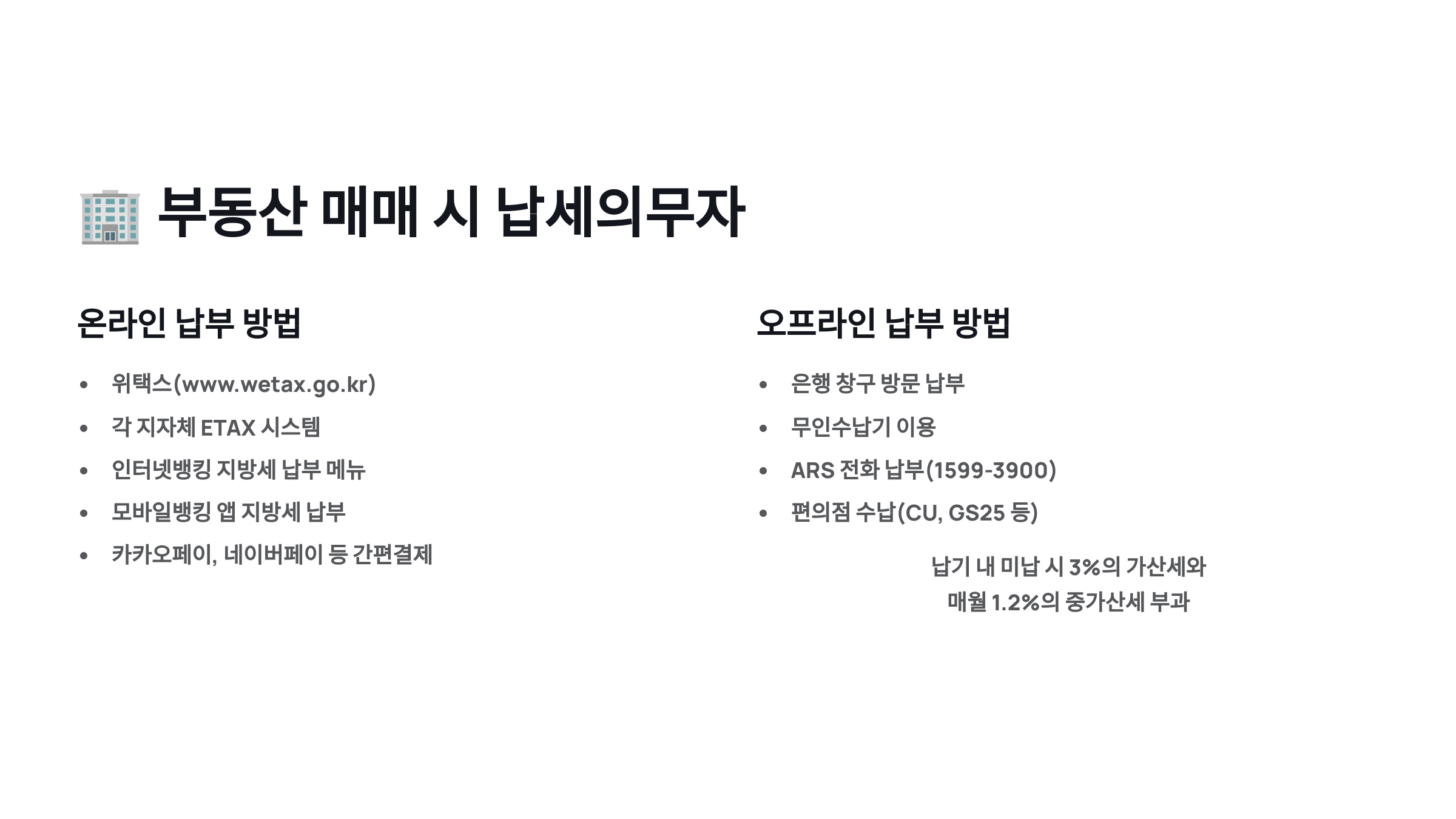 납부기한을 넘기면 3%의 납부지연가산세가 부과되고, 이후 매월 0.66%씩 추가 가산세가 붙어요. 예를 들어 100만원의 재산세를 3개월 늦게 내면 약 5만원의 가산세를 추가로 내야 한답니다. 따라서 정해진 기간 내에 납부하는 것이 정말 중요해요! 🏠